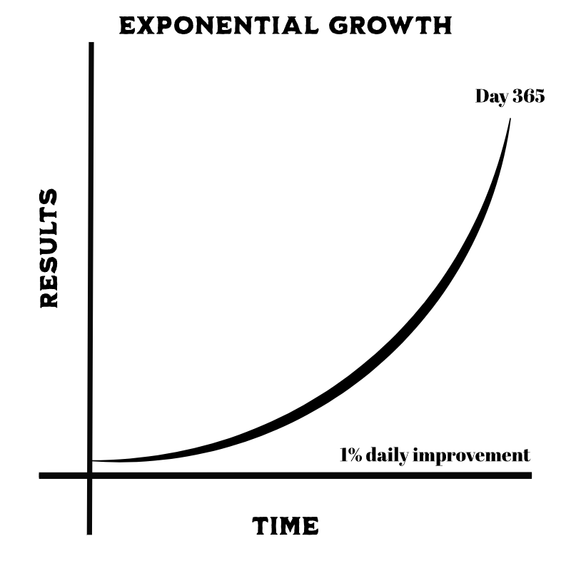 Brand empowerment precursor for a self development mindset. 1% daily progress yield transformational growth over a long period of time.